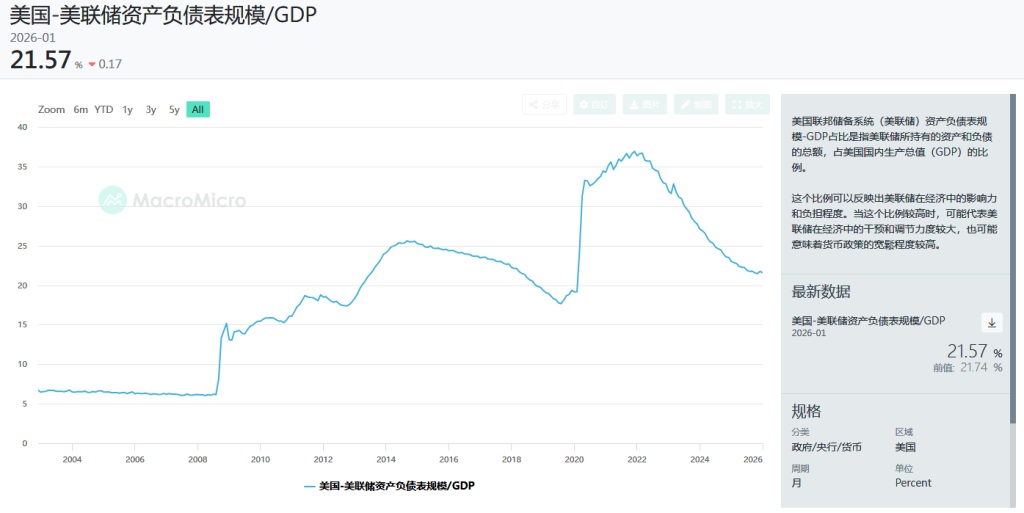未来,这一比率继续下降的空间极小。一旦美国经济出现任何风吹草动,或金融市场承压,美联储就必须注入流动性(扩表)进行对冲。其资产负债表将呈现 “遇问题则升,无问题则稳或微降”的波动性上行趋势。这是由当前脆弱的金融结构所决定的必然路径。