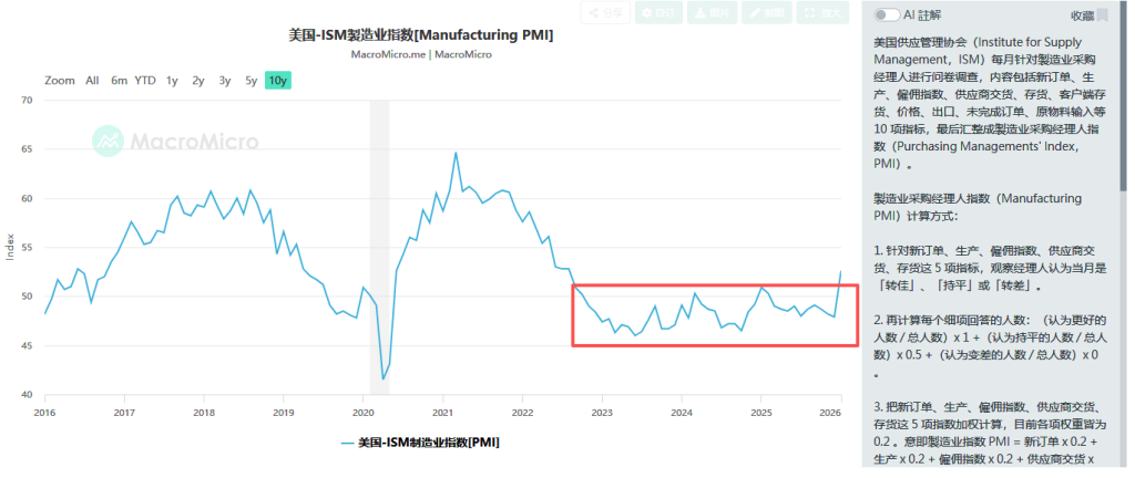 然而,当前数据(如ISM制造业指数长期低于荣枯线)并不支持“生产率奇迹即将到来”的幻想。