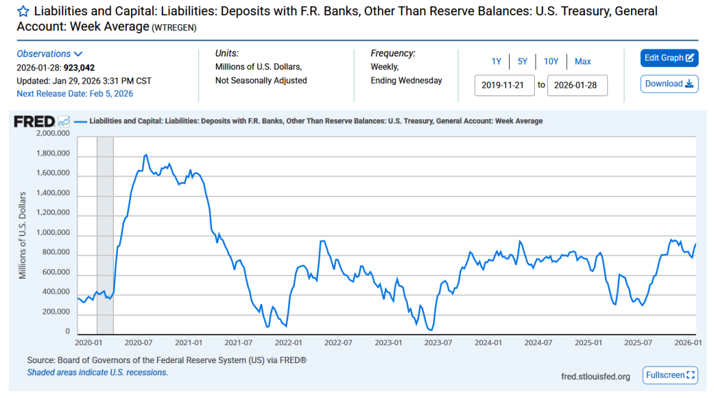 3.TGA账户:这是美国政府的“钱袋子”。若从TGA账户抽水(缩减其余额),意味着联邦政府可直接动用的资金减少,将直接影响财政开支,这是特朗普政府无法接受的。